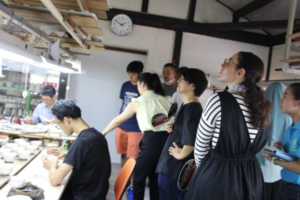 夏の暑さも忘れて、工房内の作品や職人さんの手さばきを前のめりに見つめる留学生の姿勢がとても印象的でした。