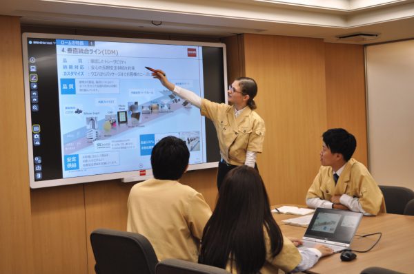 入社したとき、先輩社員によるOJT(On the Job Training)があります。また、ロームにはメンタープログラムもあり、自分の部署に関連がありつつ自分とは違う部署に属している先輩社員と話す機会があります。これも、別の部門でどんな仕事をされているか聞くよい機会ですね。