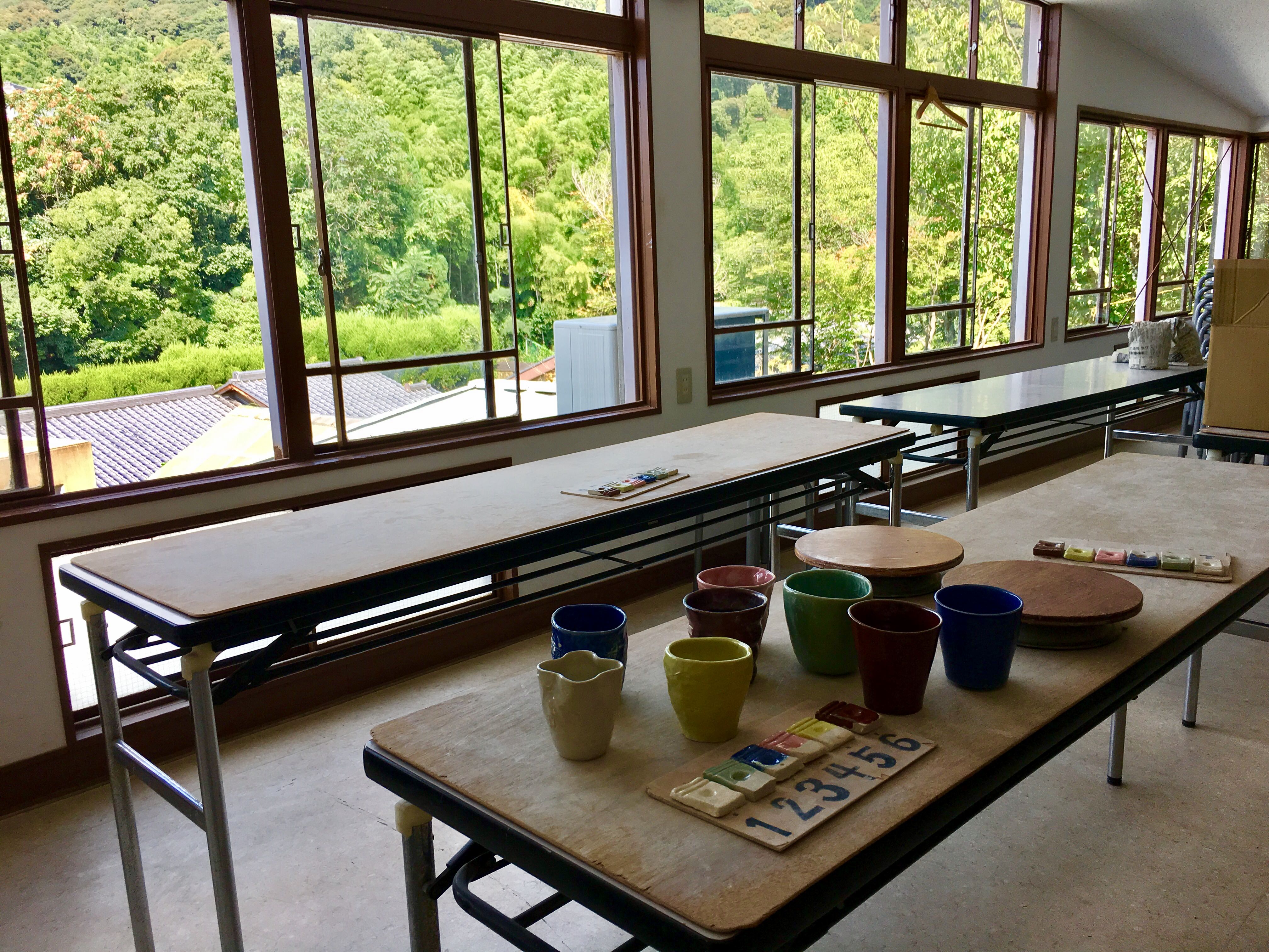 Study Kyoto Magazine recently visited Mori-Toki-kan, a popular Kyoto shop for pottery-making. The space inside the workshop was quite large and calm, and the natural scenery outside the window seemed very Kyoto-like.