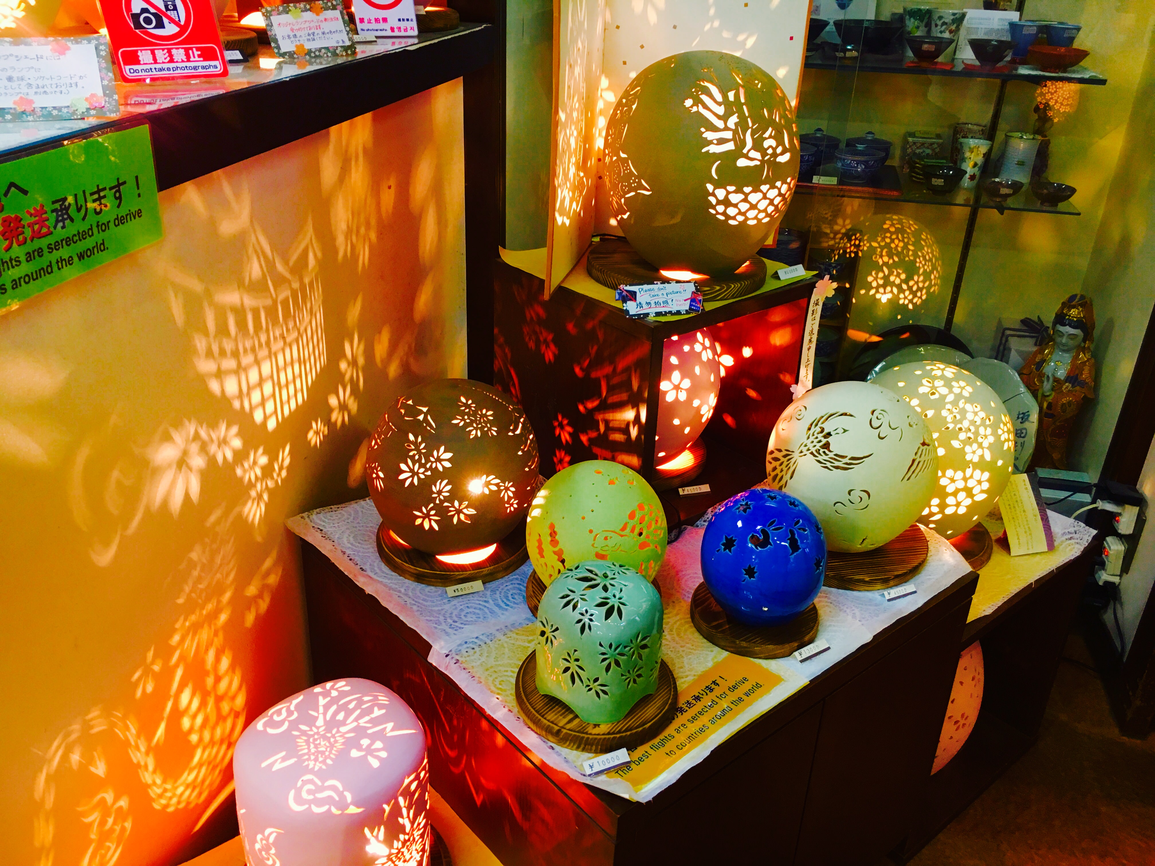 In addition to the pottery courses, earthenware and Japanese souvenirs are sold in Mori-Toki-kan. The shop recommends its earthenware lampshades the most. Would you like to go to Mori-Toki-kan to learn about Japanese culture?