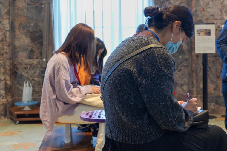 また、「談話室」では月に何度か、ラーニング担当スタッフの方が在室されている「ぽよよんタイム」というイベントも企画されていて、気軽に質問や感想を言ったりする「談話」を楽しむことができます。この「ぽよよん」という言葉がイベントの名前についているのにも、おもしろい理由がありました。「ぽよよんタイム」に参加して、ぜひ質問してみてください!