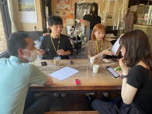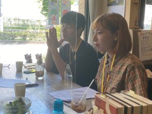 Omong-omong, kedai kopi Shinshindo di depan gerbang utara Universitas Kyoto yang kami datangi untuk sesi wawancara ini adalah salah satu tempat yang menjadi latar suatu adegan penting di dalam karya The Night is Short, Walk On Girl. Kali ini, atas kebaikan pihak kedai kopi ini kami bisa duduk untuk wawancara di kursi yang sama dengan tokoh dalam cerita! (Pengambilan foto dalam kedai kopi juga dilakukan setelah mendapat izin sebelumnya.)