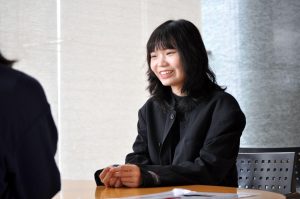 「私個人としては、日本語のスキルが使える点ですね。それと、自分とは価値観の中にいられるともプラスに感じています。日本で暮らし、働くことで、今までとは違う知識を得られると思います。きっと、中国とは全然違う、日本独自のビジネスマナーなども学んでいかないとダメですからね。日本で長い間留学しているので、日本の一般的なマナーはある程度知っていますが、社会人として働くのは初めてなので、学校の外の世界での日本のマナーを学びたいと思っています。」