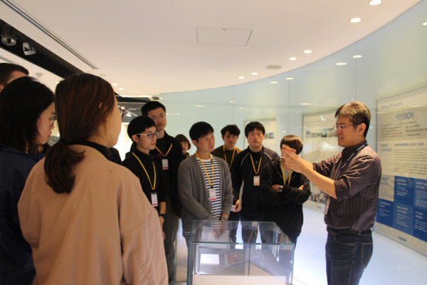 Our company tour began with an introduction to the company from HR staff member Tsubota Kazuhiro and a visit to the product showroom. In the showroom, there were internal auto components, film touch sensors, medical electrodes, and other products Nissha manufactures on display. I was surprised to hear that they supply key parts to world-famous manufacturers of cars and game consoles.