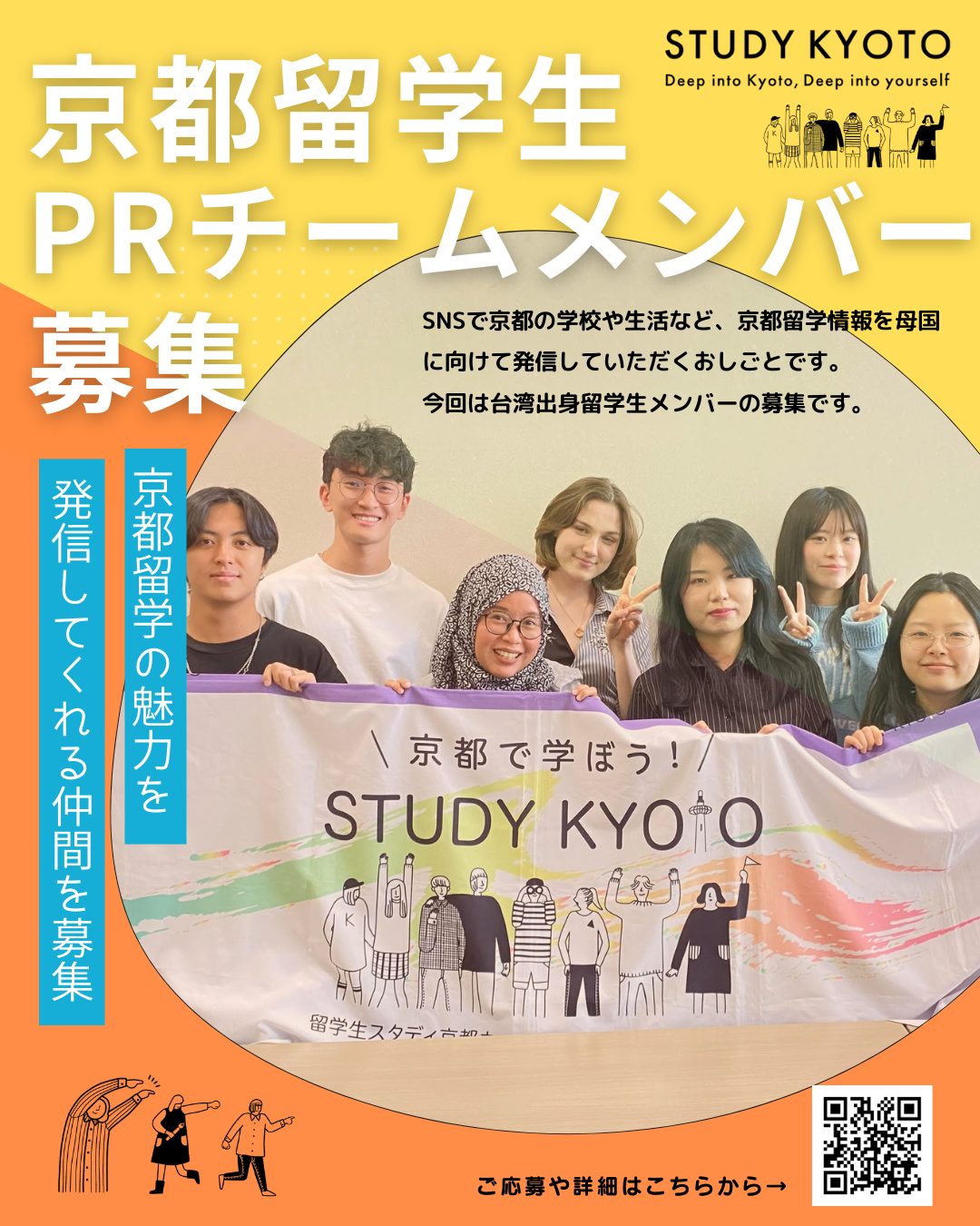 私たちと一緒に、留学先としての京都の魅力を外国人留学生の視点から発信していただける方、ご応募お待ちしています。