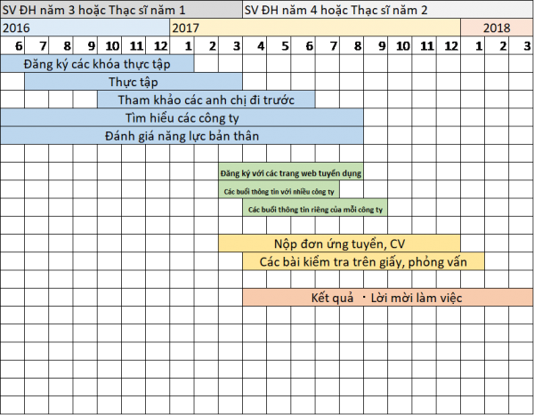 Lịch trình săn việc làm (với lứa sinh viên tốt nghiệp năm 2018)