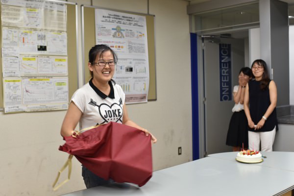 When you’re studying in Japan, you’re required to enter either a graduation seminar, or a lab. In a seminar/lab setup, students study in a small group format, holding discussions with a few students and a professor. For the most part, we spend all of our time researching, but we do have events from time to time, like a welcome parties, dinners, sake parties, birthday parties, and so on. This photo is of my birthday party. The present I was given is my secret!