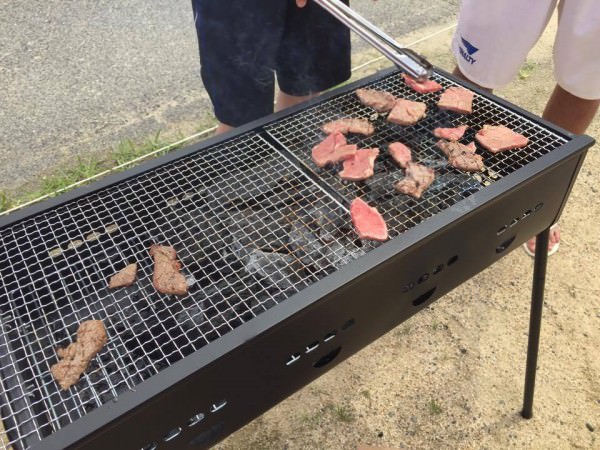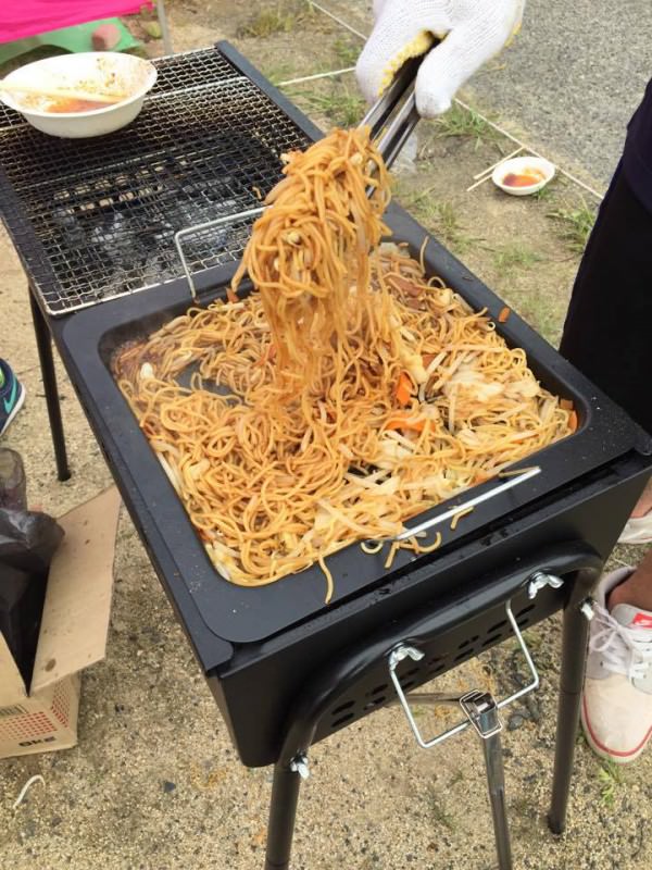 During break periods, we made a camp and had a barbecue. We grilled our favorite kinds of meat, vegetables, and yakisoba noodles, and spent a really fun night sharing food together.