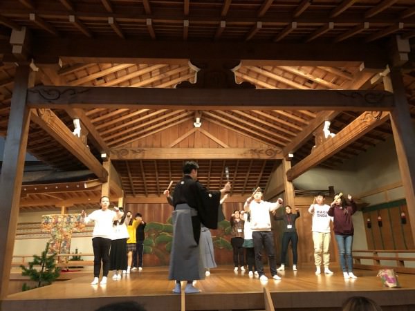 To enter the world of Noh, we took a trip to Kongo Noh Rakudo. After learning about the history of Noh, its masks, and the construction of the stages, our whole group actually got up on the stage and tried singing and dancing.